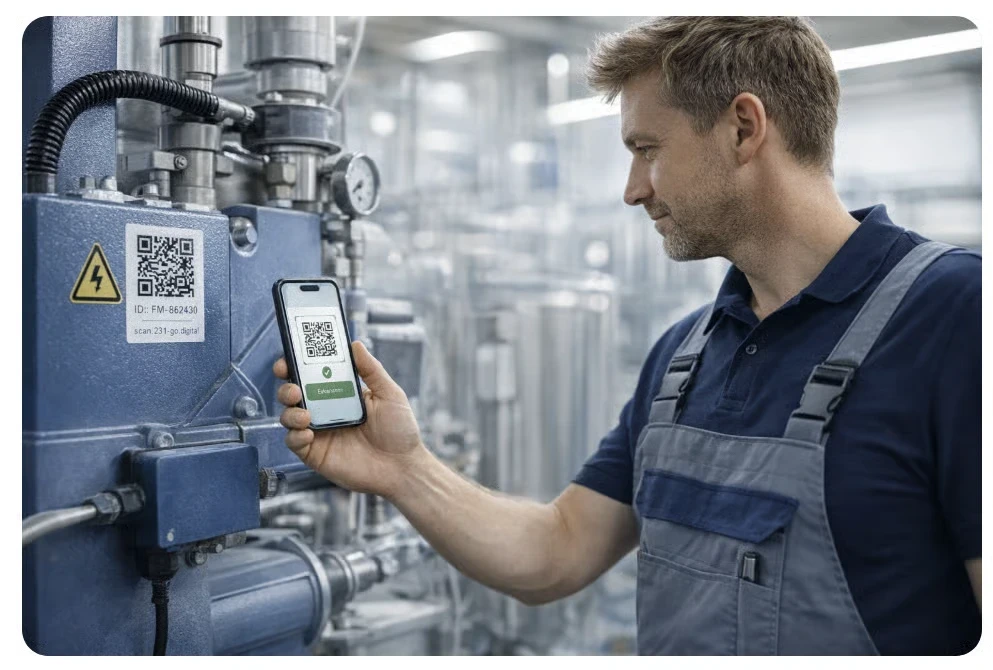 Viele Prozesse beginnen direkt im Gebäude – bei einer Anlage, einem Raum oder einem Gerät. Ein Scan kann den gesamten Workflow starten.